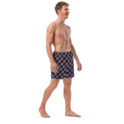 Dive into the transcendental with these “Arcane Check” swim trunks. Featuring hypnotic checkerboard patterns that twist and warp into surreal waves of deep black, vivid white, and electric purple.